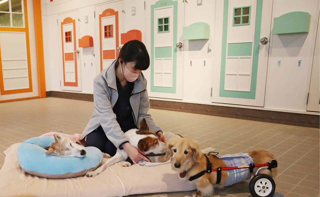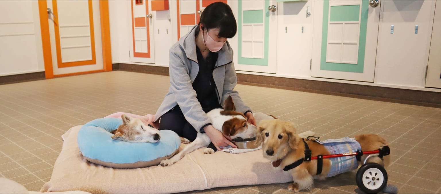 10:00-19:00の間お預かりし、通常の介護・看護ケアに加えて個々の状態に合わせたリハビリ・マッサージ、シニアの生活に楽しい刺激を与えるトレーニングなどを提供します。食事・運動・休息のバランスをとりながら、ワンちゃんの状態に合わせたメリハリのあるケアを提供することで、心身ともに安定した生活を支えます。ご希望の場合は、オプションで健康診断やシャンプー、トリミングを利用することができます。(料金別途)