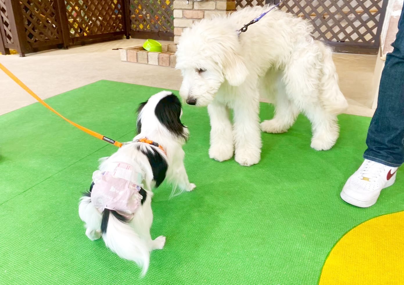 緊張・興奮が強すぎてしまう場合など、ワンちゃんのご様子によってはリードの着用や抱っこをして