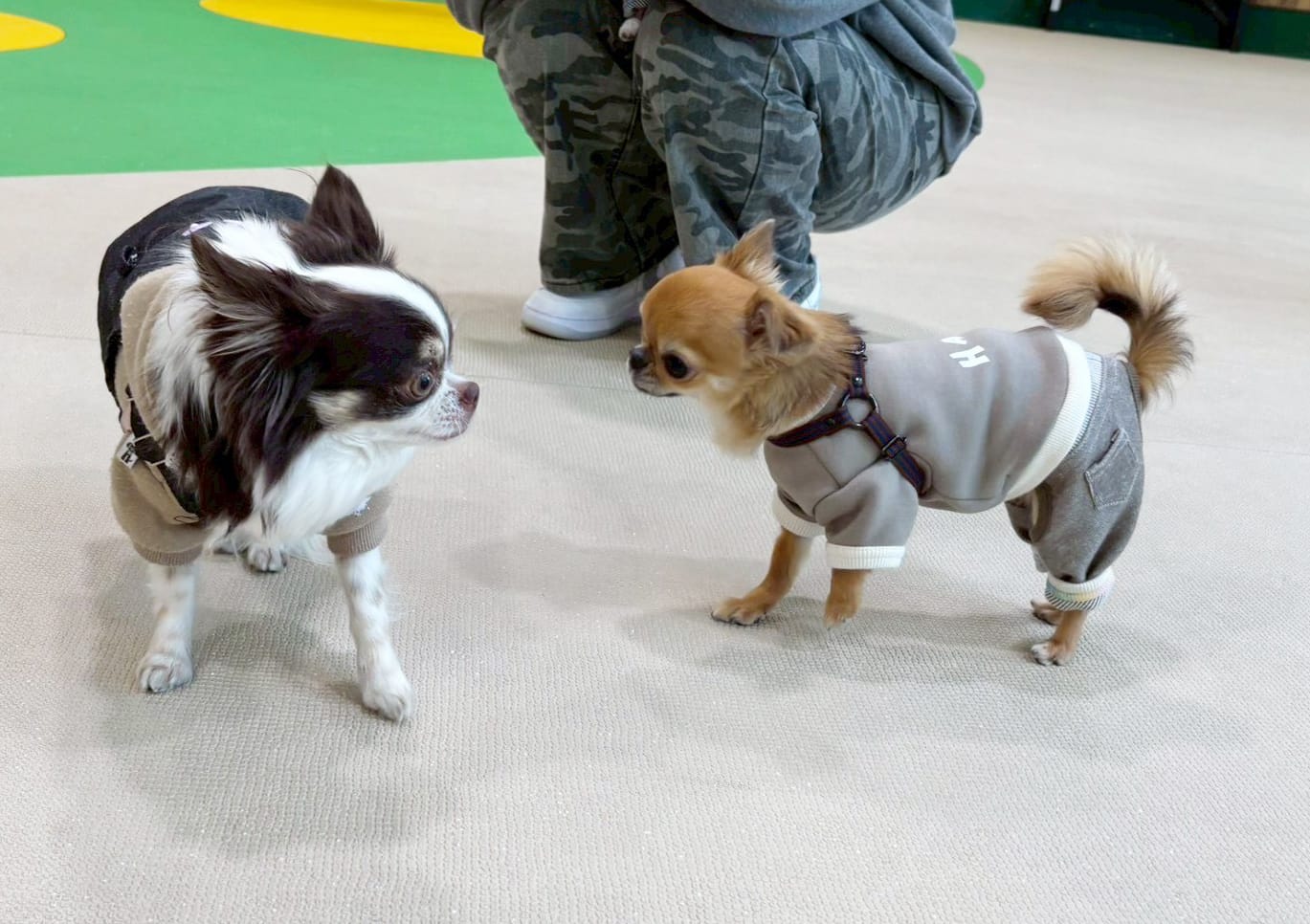 同じような性格の(控えめな)ワンちゃん同士で、ゆっくり慣れていくお時間です。