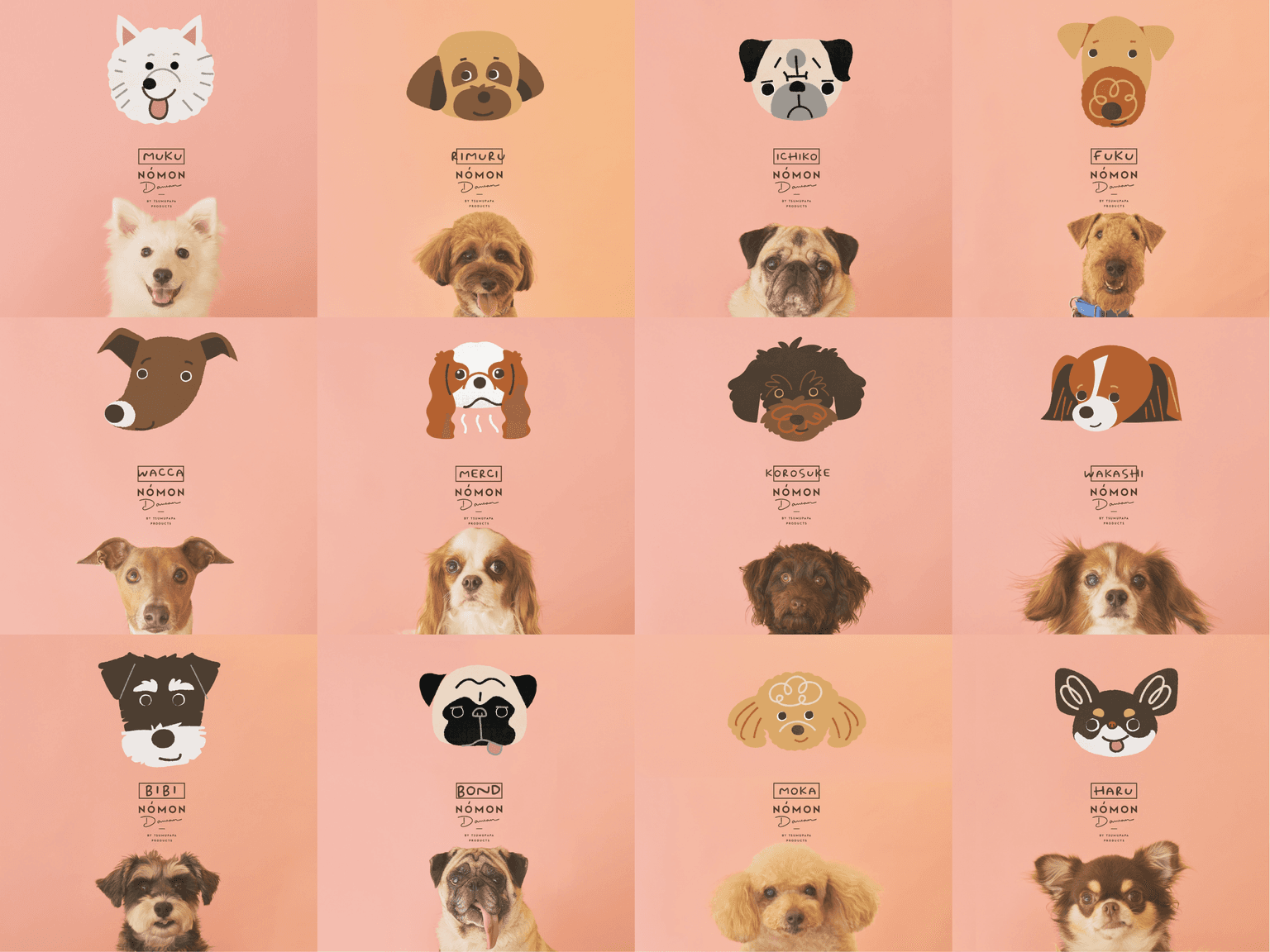 そんなつむぱぱが手掛けるワンちゃんの似顔絵ブランド「NOMON DAWAN(のもんだわん)」