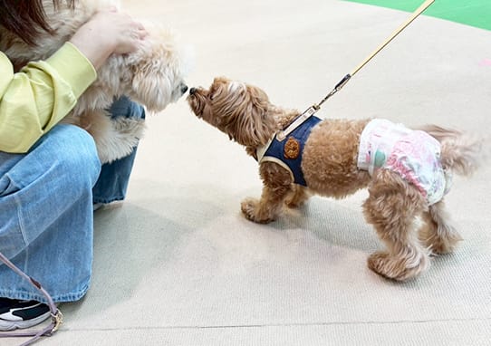 お互いに距離を保ち、ワンちゃんのペースを大切にしながら、まずは“他のワンちゃんが一緒にいる空間でもリラックスして過ごせるようになること”から始めませんか?