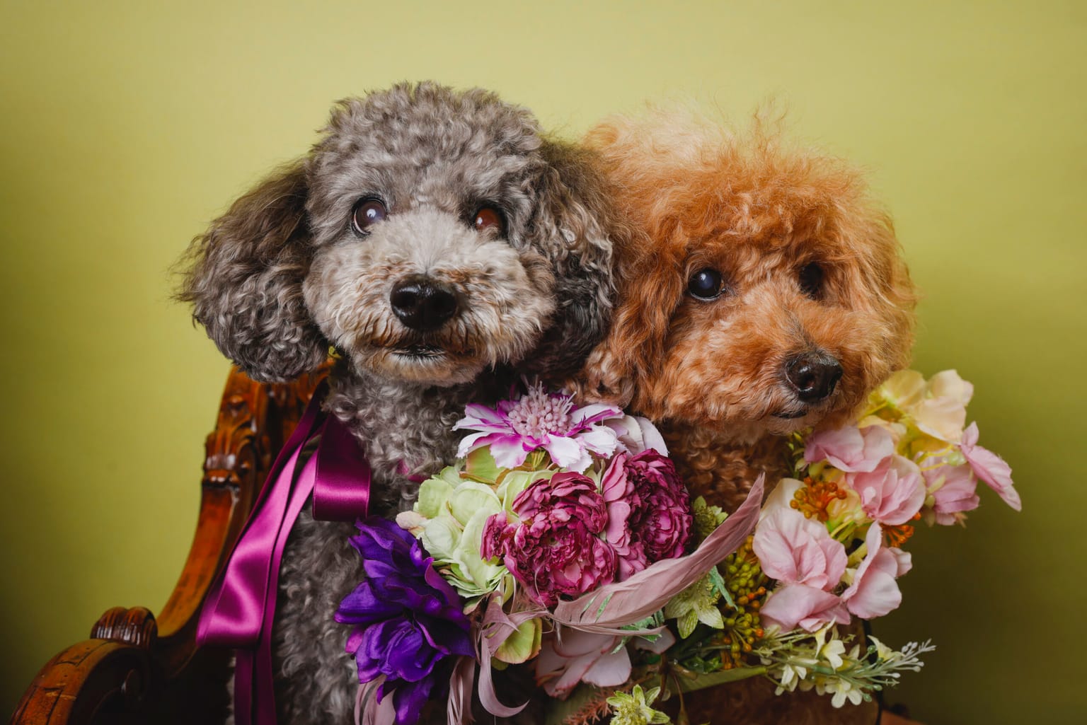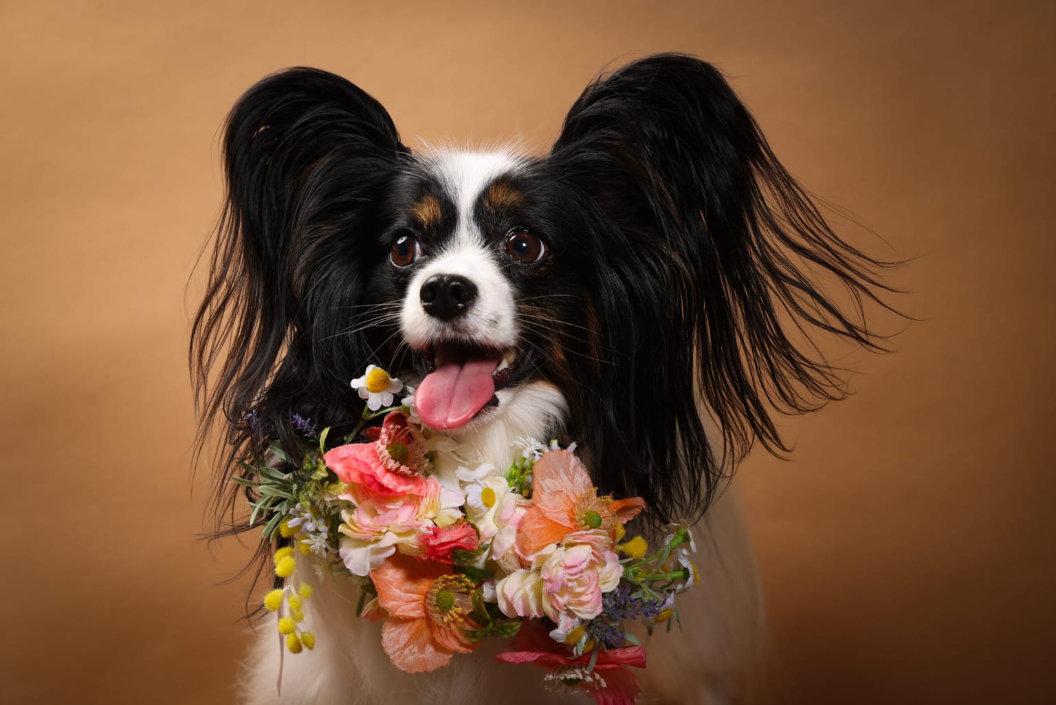 「幸せの連鎖」を象徴するお花の首飾りもご用意しており、撮影の際に愛犬に着けていただけますよ^^